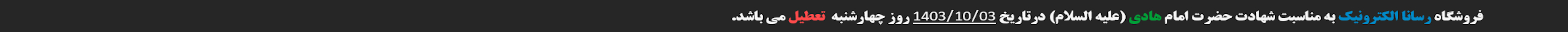جمعه ها تعطیل می باشد و سفارشات دریافتی روز شنبه پردازش می شوند.