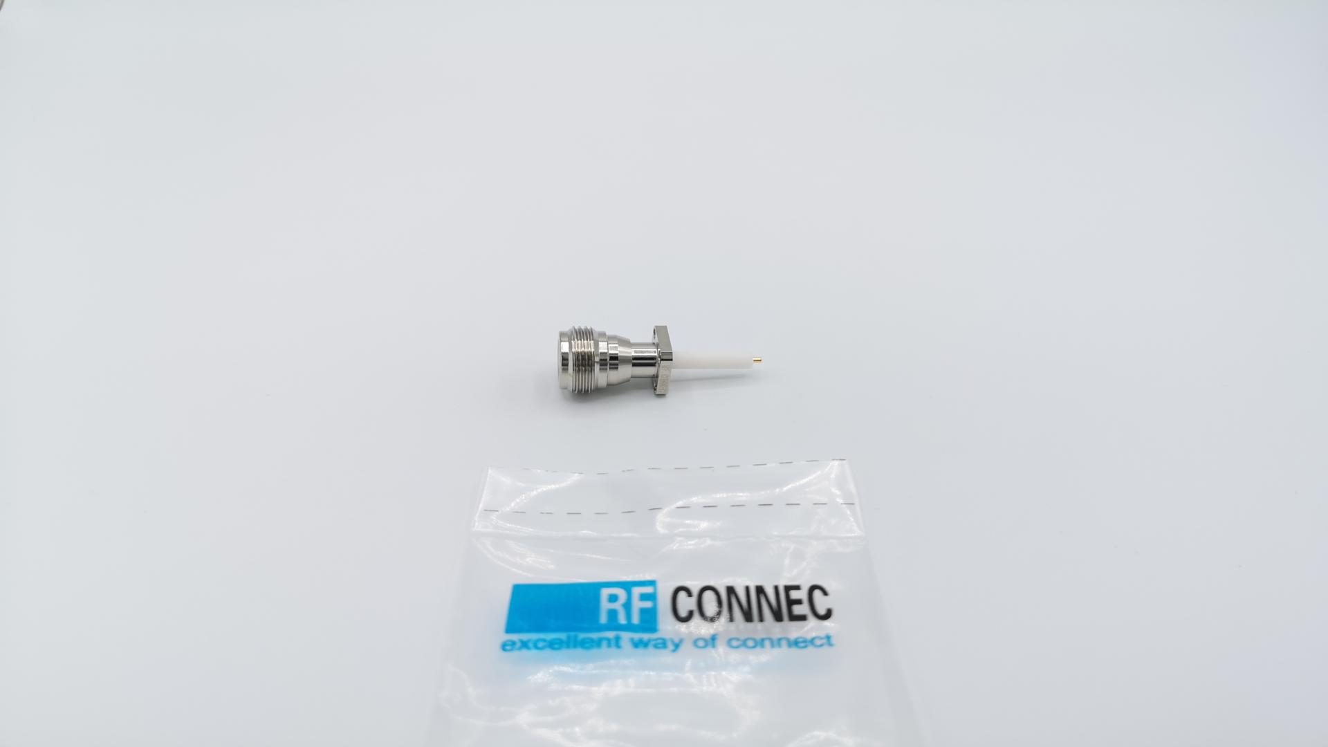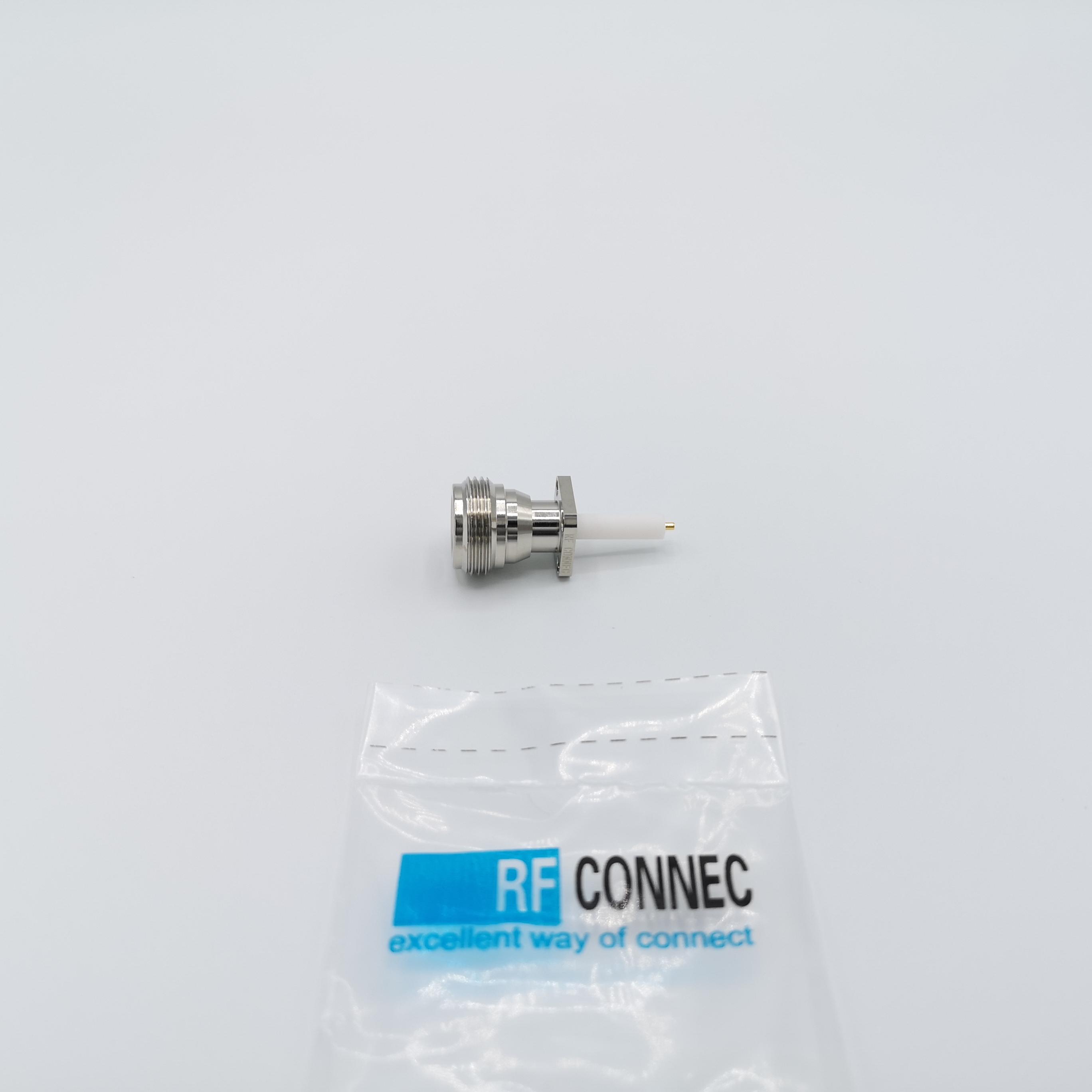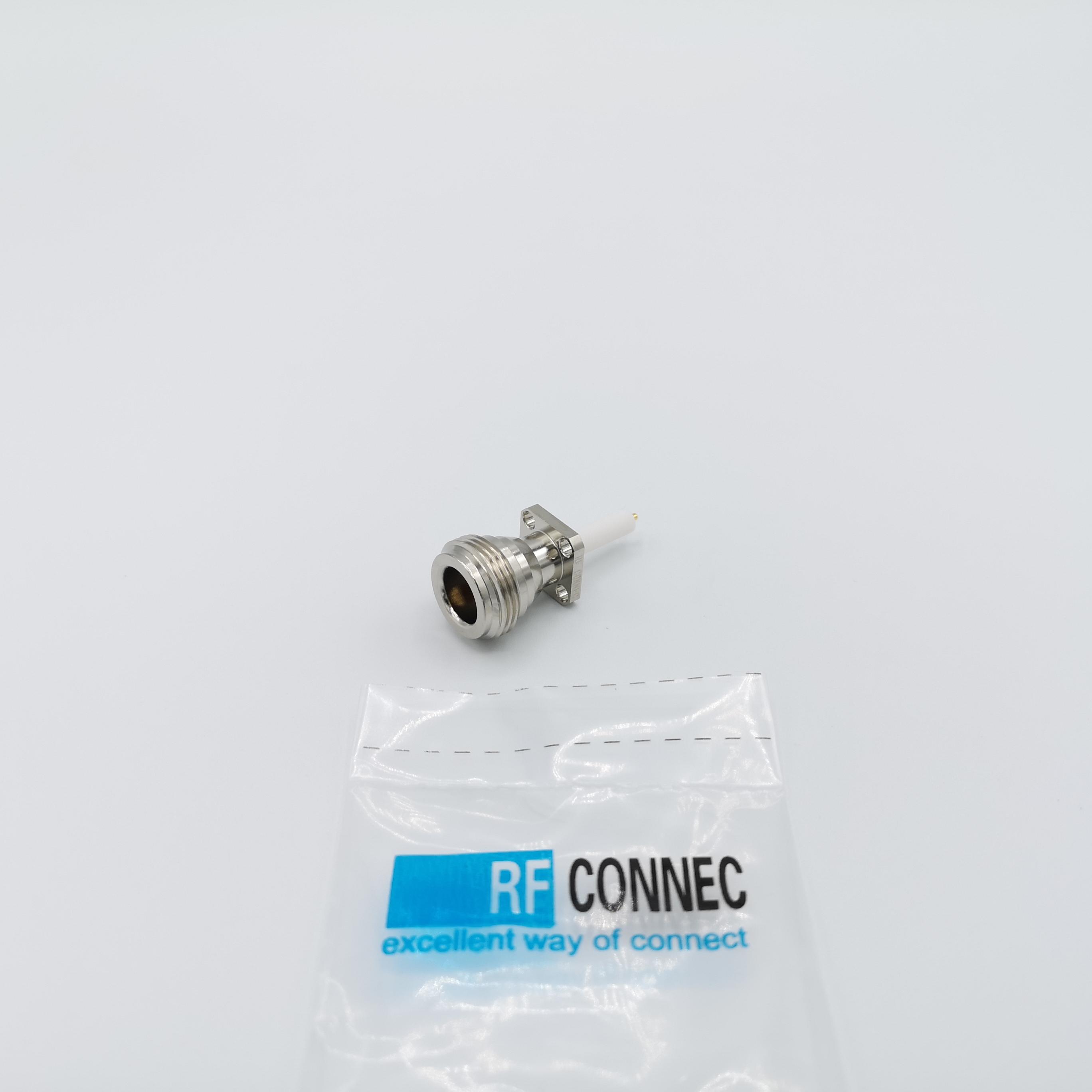 کانکتور N-TYPE مادگی پنلی چهار سوراخه تفلون بلند مستقیم هوبر (فلنچ SMA) با مغزی(پین) استاندارد می باشد.