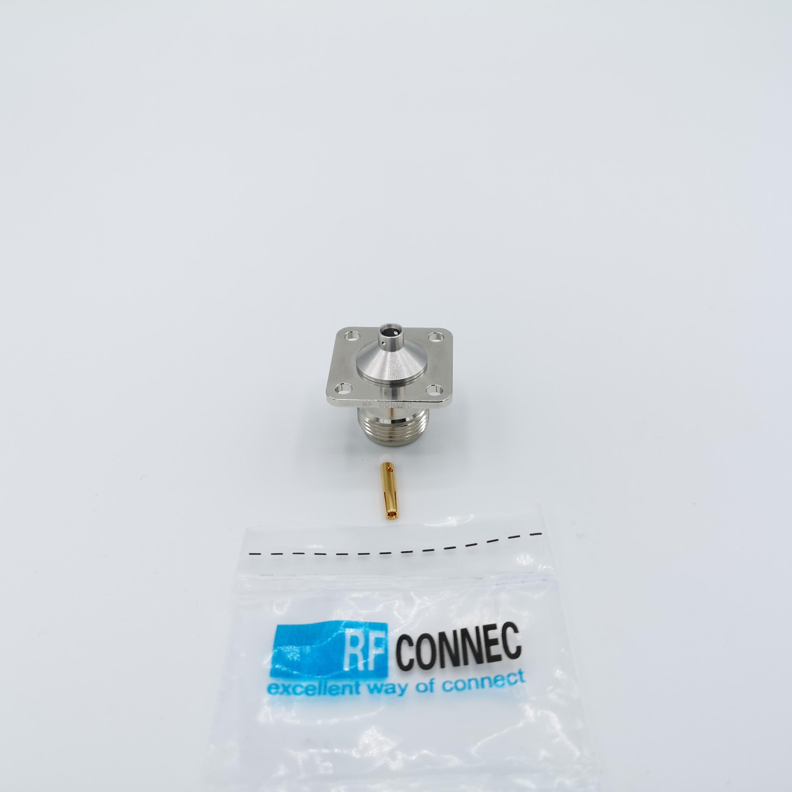 کانکتور N-TYPE مادگی سرکابلی پنلی چهار سوراخه مستقیم با مغزی(پین) استاندارد مناسب برای کابل های کوآکسیال به شرح زیر می باشد: