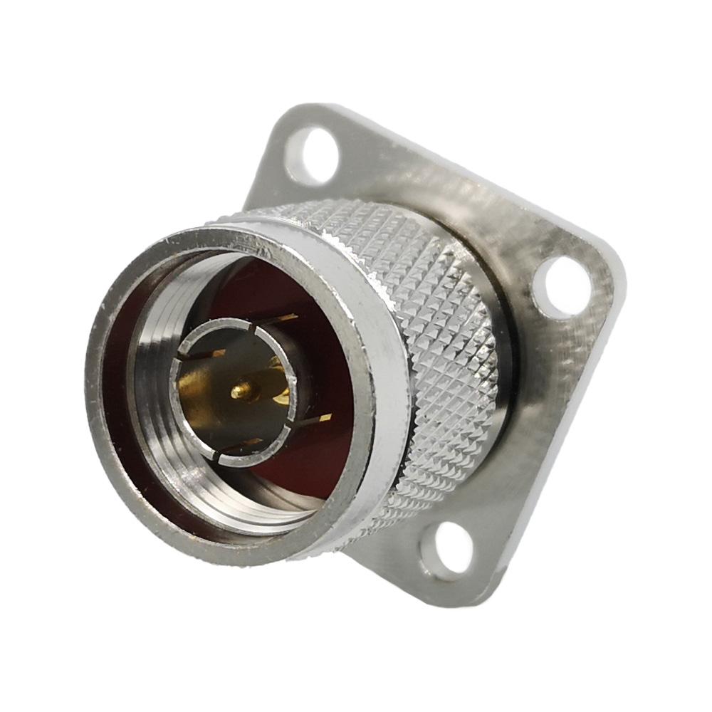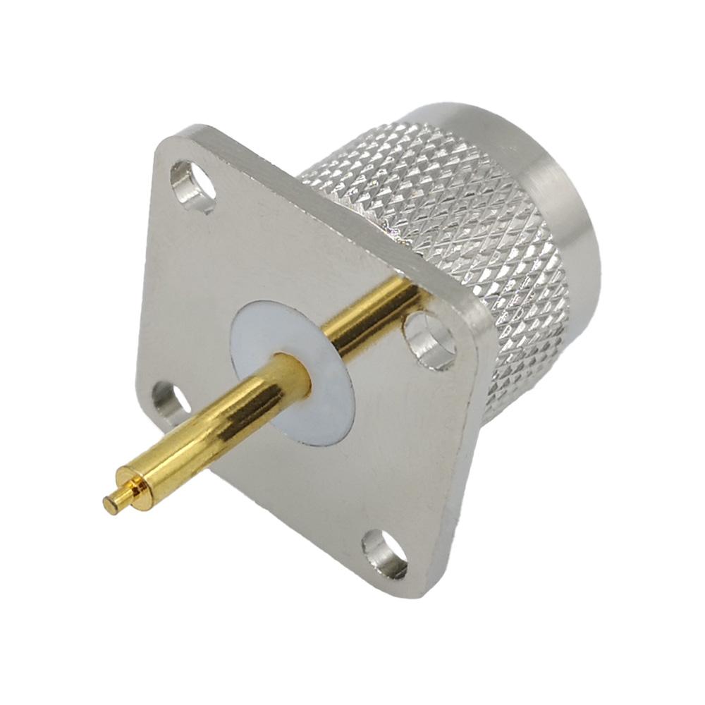 کانکتور N-TYPE نری پنلی چهار سوراخه مستقیم با مغزی(پین) استاندارد می باشد.